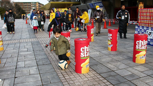 1.ピッチの上でシュートゲームとドリブルゲーム等で対戦