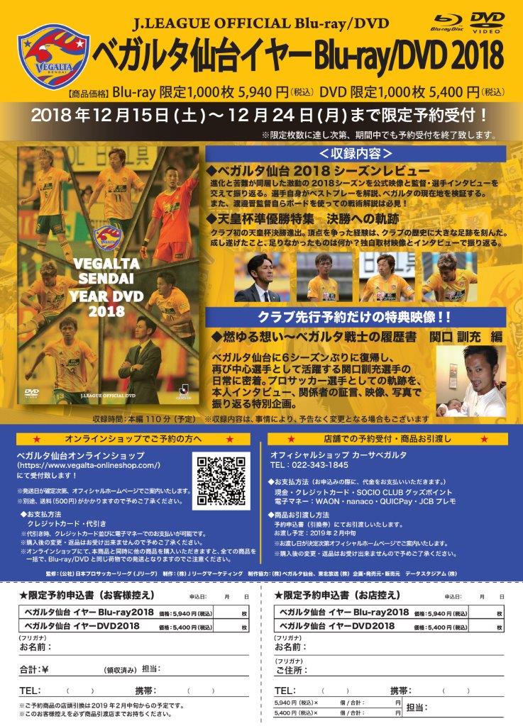 【予約商品】『ベガルタ仙台イヤーBlu-ray・DVD2018』2次予約販売のお知らせ
