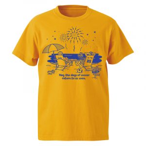 現在は、大変な状況ではありますが、サッカーのある日常が早くもどることを祈念して、花火をデザインしました。