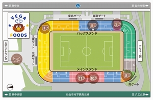 ユアテックスタジアム仙台および、周辺エリアでは高密度Wi-Fi「VEGALTA FREE Wi-Fi」が無料でご利用いただけます。