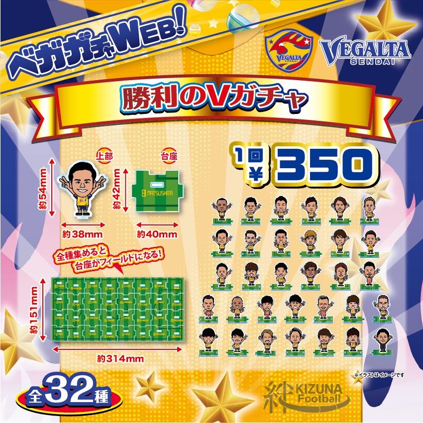 ニュース > グッズ 【オンラインストア】勝利のVガチャ 販売開始中 掲載日:2020年8月8日 8月8日(土) 2020明治安田生命J1リーグ 第9節アウェイゲームヴィッセル神戸戦で勝利した為、下記の通り勝利時限定販売アイテムのベガガチャ 「勝利のVガチャ」の販売を行います。勝利の喜びを一緒に味わいましょう! 勝利のVガチャ販売について スライド 商品名 勝利のVガチャ 販売価格 318円(税別) 発売日 2020年8月8日(土)〜8月9日(日) ※数量限定の販売となります。 ※販売数量に達し次第、販売を終了いたします。予めご了承下さい。 ※カーサベガルタでは8月9日(日)10:00〜より販売を開始いたします。 販売場所 【お求めはこちらから】