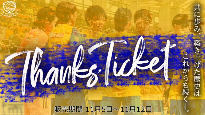ともに戦ってくださったサポーターの皆さんへの感謝の気持ちを込めて、#THANKS TICKET(サンクスチケット)を販売いたします。ご購入いただいたチケット1枚につき、ユアテックスタジアム仙台のバックスタンド側にチームフラッグを掲出いたします。(11月12日までの受付となります。)