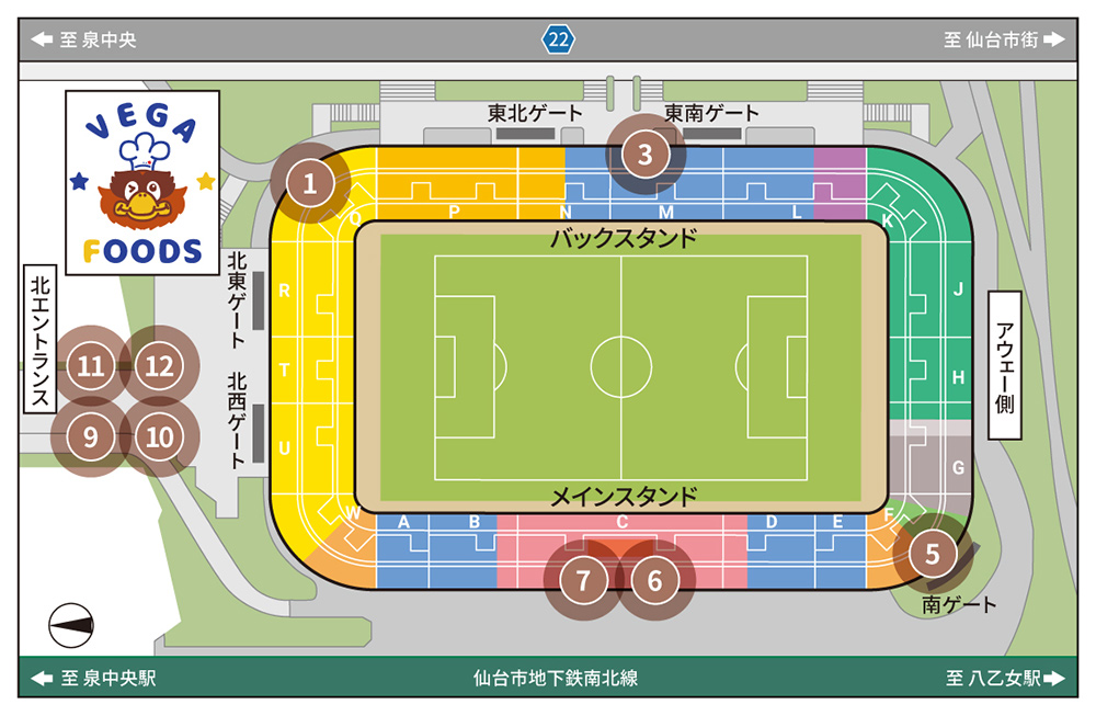 ベガフーズの売上の一部は、貴重なクラブ収入源となります。ぜひ、ユアテックスタジアム仙台でのご飲食をお楽しみいただき、ベガルタ仙台の強化へご協力をお願いします。
