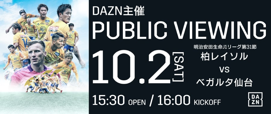 【10/2 J1 柏戦】「DAZN主催パブリックビューイング 明治安田生命J1リーグ 第31節 柏レイソル vs ベガルタ仙台」開催のお知らせ