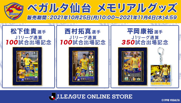 5月26日(土)名古屋グランパス戦においてJ1リーグ通算100試合出場を達成した松下 佳貴選手。6月23日(土)清水エスパルス戦においてJ1リーグ通算100試合出場を達成した西村 拓真選手。8月3日(火)ガンバ大阪戦においてJ1リーグ通算350試合出場を達成した平岡 康裕選手。3人の素晴らしい記録達成を称え、記念グッズを製作いたしました。期間限定販売ですので、お早めにお買い求めください!