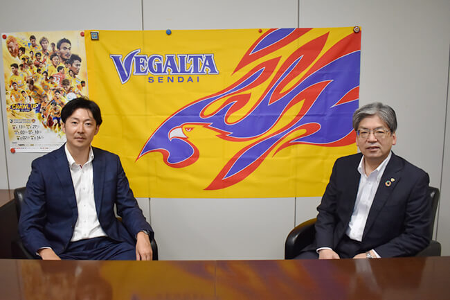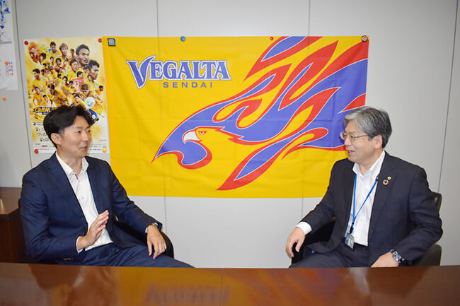 2022年8月16日、ベガルタ仙台代表取締役社長 佐々木知廣とベガルタ仙台のサステナブルパートナーである株式会社ライズ・コンサルティング・グループ常務執行役員の白井亮さまがそれぞれの立場から、SDGsや地方創生への取り組みについて語り合いました。