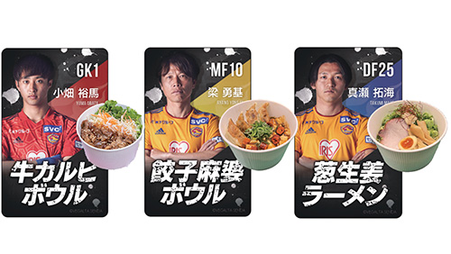 昨シーズン大人気だった小畑裕馬選手の牛カルビボウルに加えて、梁勇基選手の餃子麻婆ボウルと真瀬拓海選手の葱生姜ラーメンが新登場。梁選手の好物の餃子と麻婆豆腐のコラボ!ひとつの丼で二度美味しい中華セットに仕上がりました!真瀬選手の葱生姜ラーメンは寒い時季にピッタリな葱生姜ラーメンは生姜の風味が広がるネギたっぷりのラーメンです