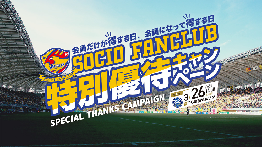 <3/21更新>【3/26 J2 町田戦】SOCIO FANCLUB特別優待キャンペーンのお知らせ