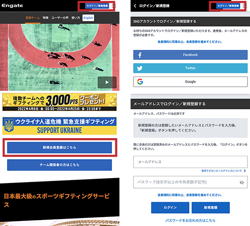 ・ エンゲートから新規会員登録