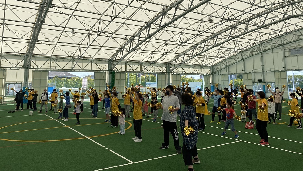 開催2年目となる2022年第1回目は、多賀城市様に共催いただき、5月5日さんみらい多賀城イベントプラザ(STEP)において開催しました。参加者親子とスタッフ総勢127名がみんなで一緒に楽しく体を動かしました。