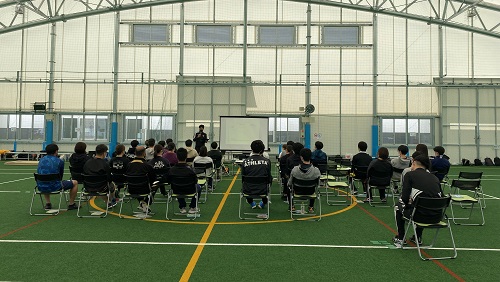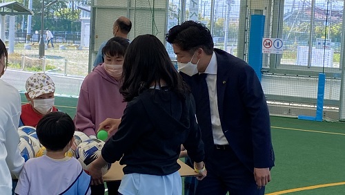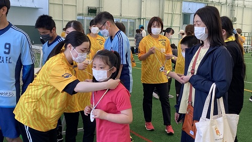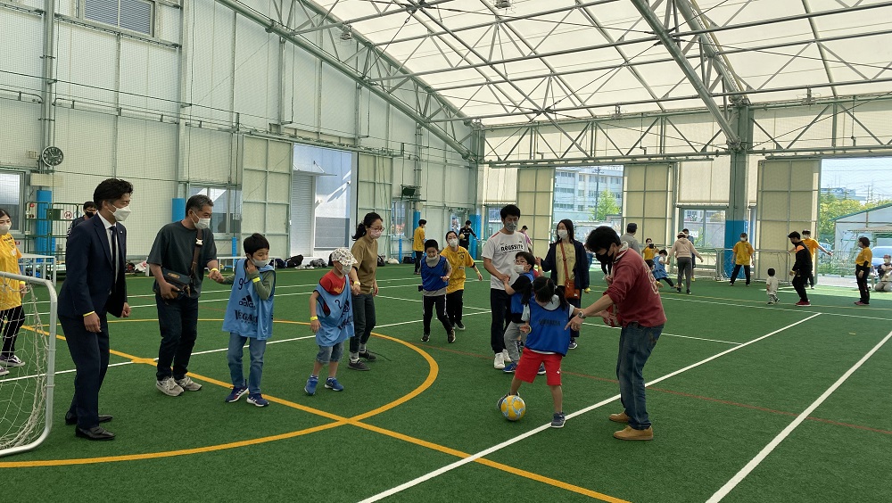 キャラバンは、尚絅学院大学の学生を中心に会場運営を行い、知的障がい者サッカーチームSendai Forzaの選手は、コーチのアシスタントを務めます。今回のキャラバンには、深谷晃祐 多賀城市長にもご参加いただきました。