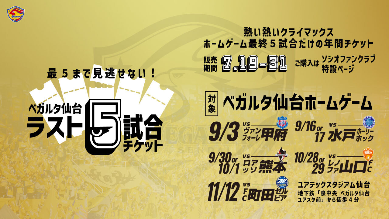 ラスト5試合チケット販売のお知らせ