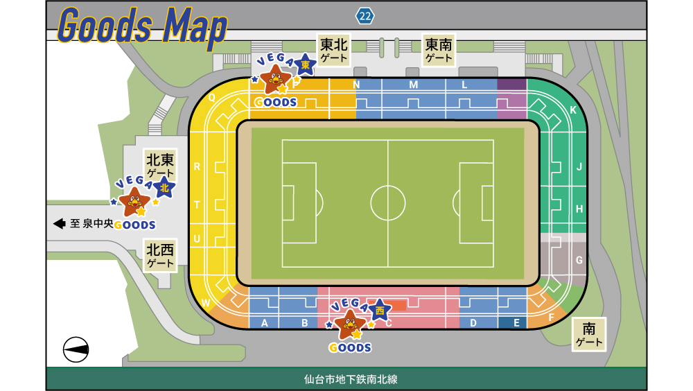 販売店舗 ・ホームゲーム会場グッズ売店(北エントランス、東、西)
