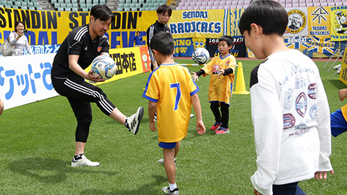 仙台市公園緑地協会主催のサッカー体験会を実施いたします。スタジアムのピッチを使用し、梁勇基C.D、富田晋伍C.C、ベガルタ仙台アカデミーコーチなどが指導いたします。初心者から経験者までどなたでも参加できる体験会です。