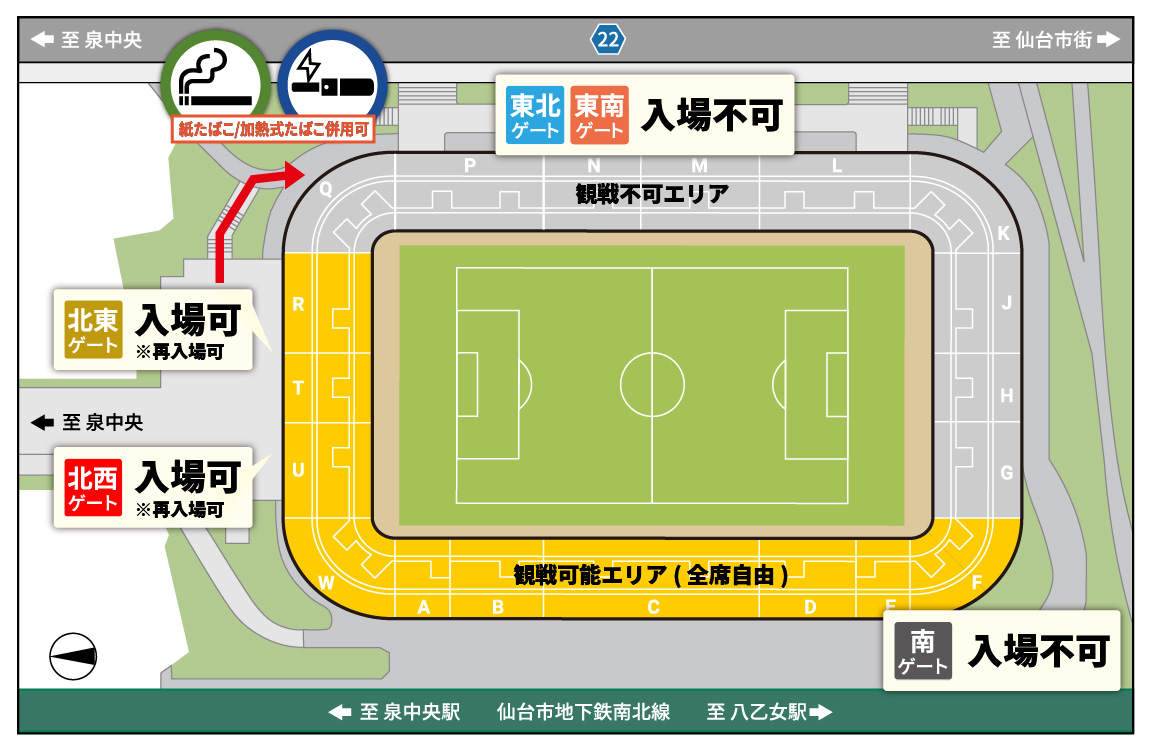 北ゲートからご入場ください。東ゲート及び南ゲートからはご入場いただけません。