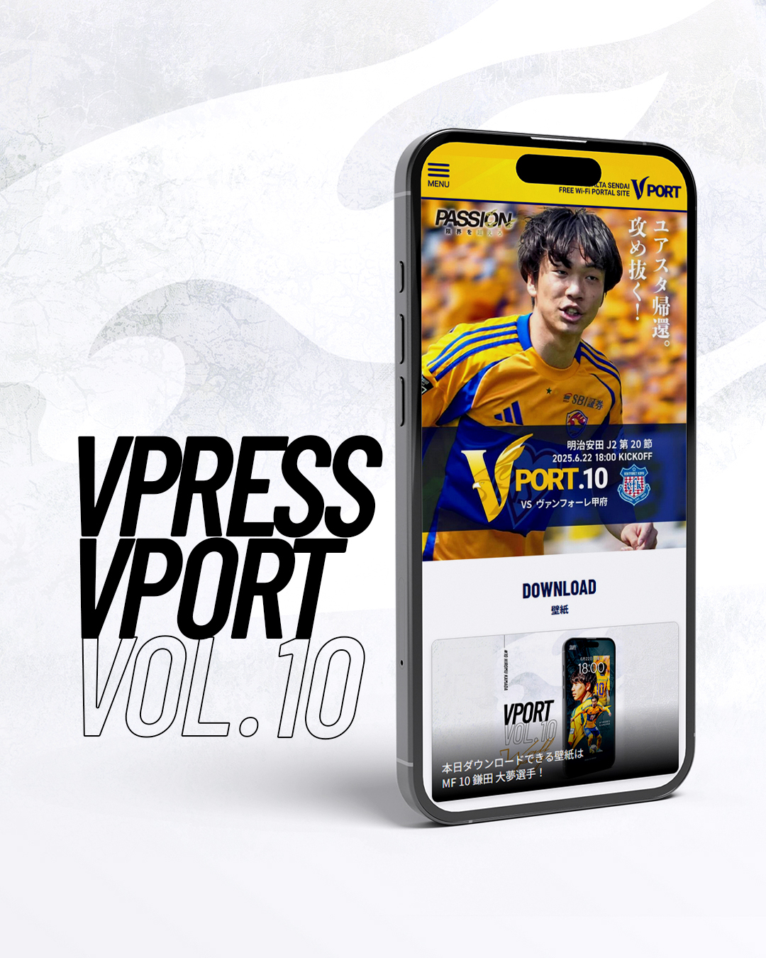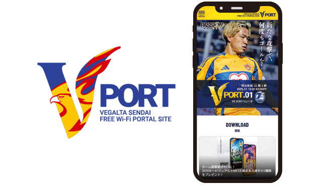 また試合当日、同Wi-Fiに接続すると、ベガルタ仙台ホームゲームLPの追加コンテンツ「VPORT」が閲覧いただけます。マッチデープログラム、Wi-Fi利用者限定の壁紙ダウンロードなどご利用いただけます。