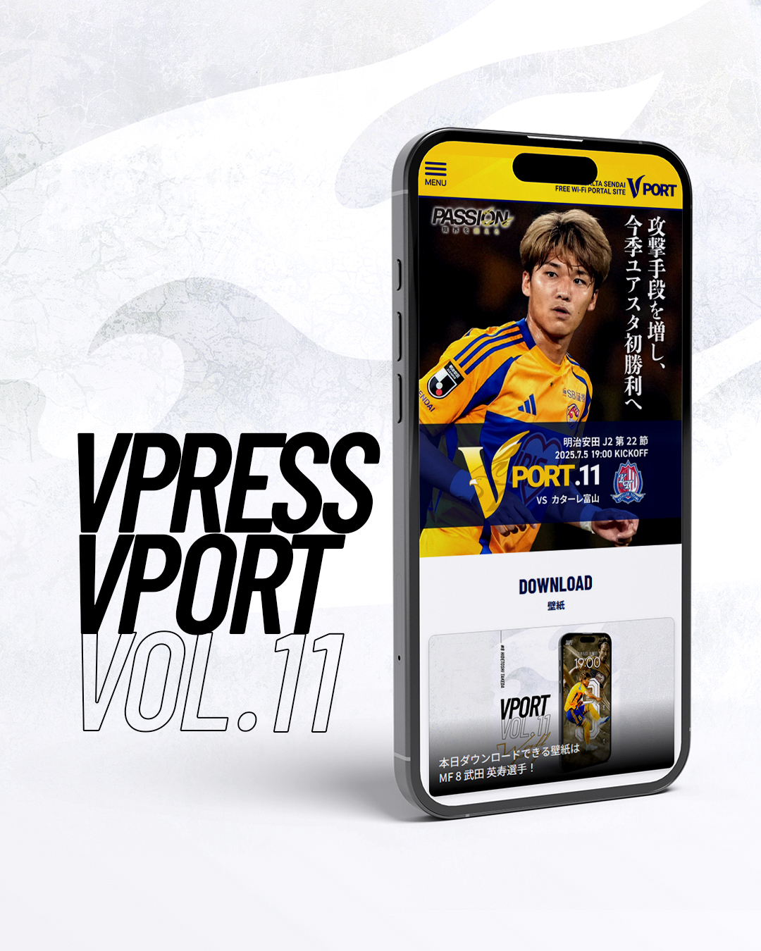 また試合当日、同Wi-Fiに接続すると、ベガルタ仙台ホームゲームLPの追加コンテンツ「VPORT」が閲覧いただけます。マッチデープログラム、Wi-Fi利用者限定の壁紙ダウンロードなどご利用いただけます。