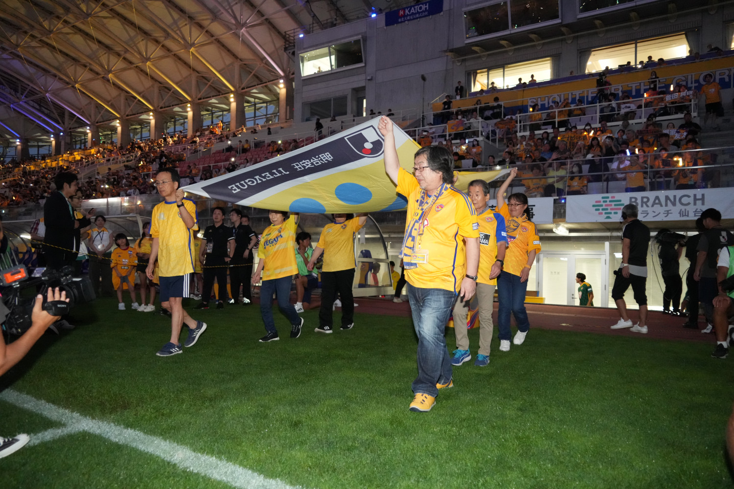 ベガルタ仙台・市民後援会ホームページの事前募集で当選されたグラン世代の方にフェアプレーフラッグベアラーとしてピッチ中央でフェアプレーフラッグを掲げていただきます。