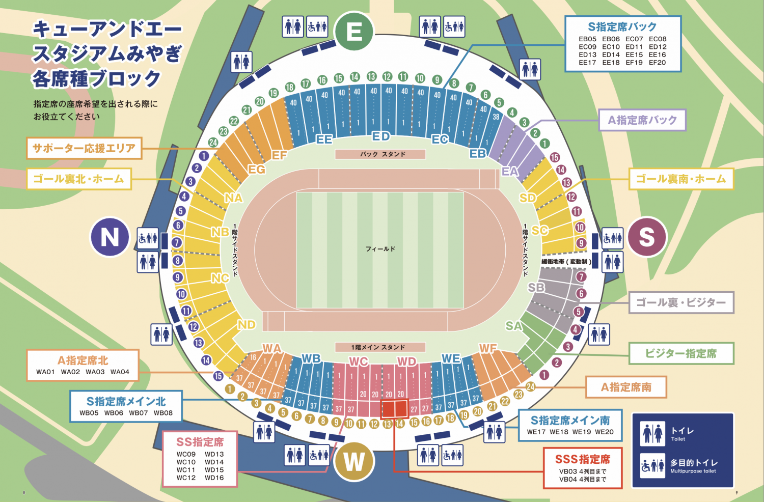 ・「サポーター応援エリア・ホーム」「ゴール裏北・ホーム」「ゴール裏南・ホーム」は自由席として運用をいたします。席指定ではございませんのでご了承ください。