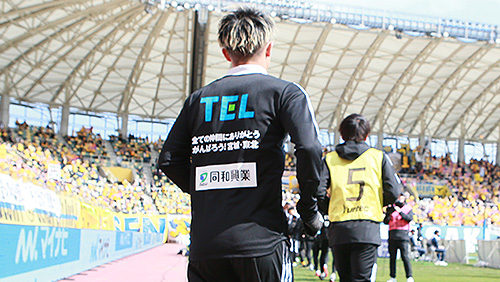 選手たちのウォーミングアップ着の背中には「全ての仲間にありがとう がんばろう!宮城・東北」の文字が。