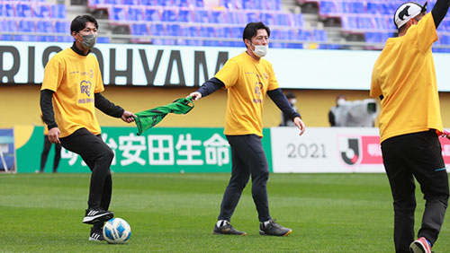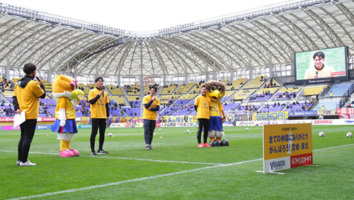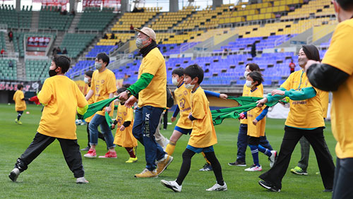今シーズンの最終戦となる、12月4日(土)明治安田生命J1リーグ 第38節 鹿島アントラーズ戦にて「アイリスオーヤマプレゼンツ防災サッカー教室&防災トークショー」を実施いたしました。 ユニフォーム(プラチナ)スポンサーであるアイリスオーヤマさまに特別協賛いただき、震災から10年という節目の年を締めくくるイベントとなりました。