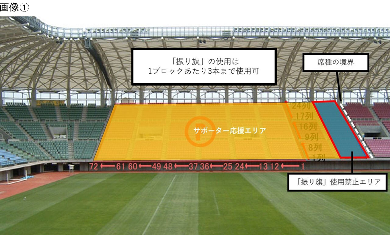 ・拡声器及び太鼓類の使用はゴール裏・ビジターのみ可とし、応援の先導、統率を目的とした場合に限りご利用いただけます。
