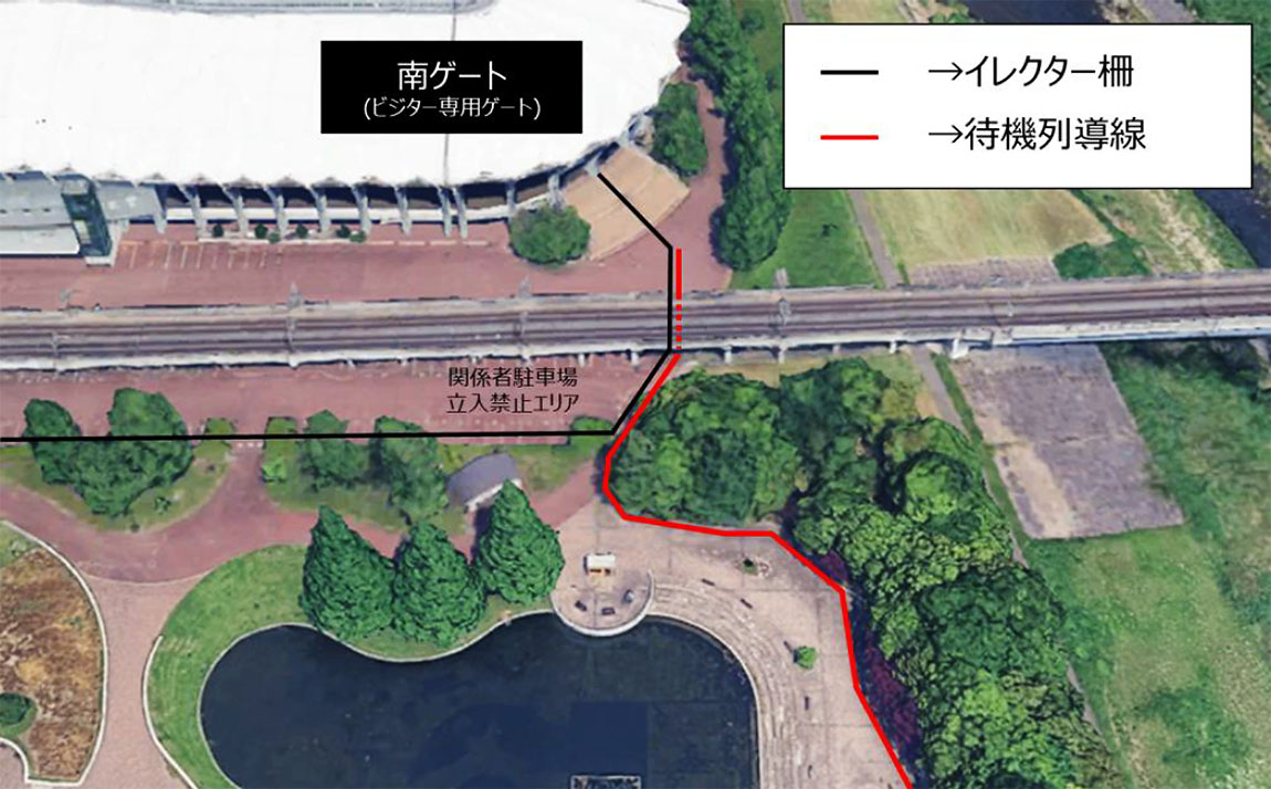 ・テープ貼りは南ゲート(ビジター専用ゲート)でのみ実施いたします。その他のゲートでは行いません。