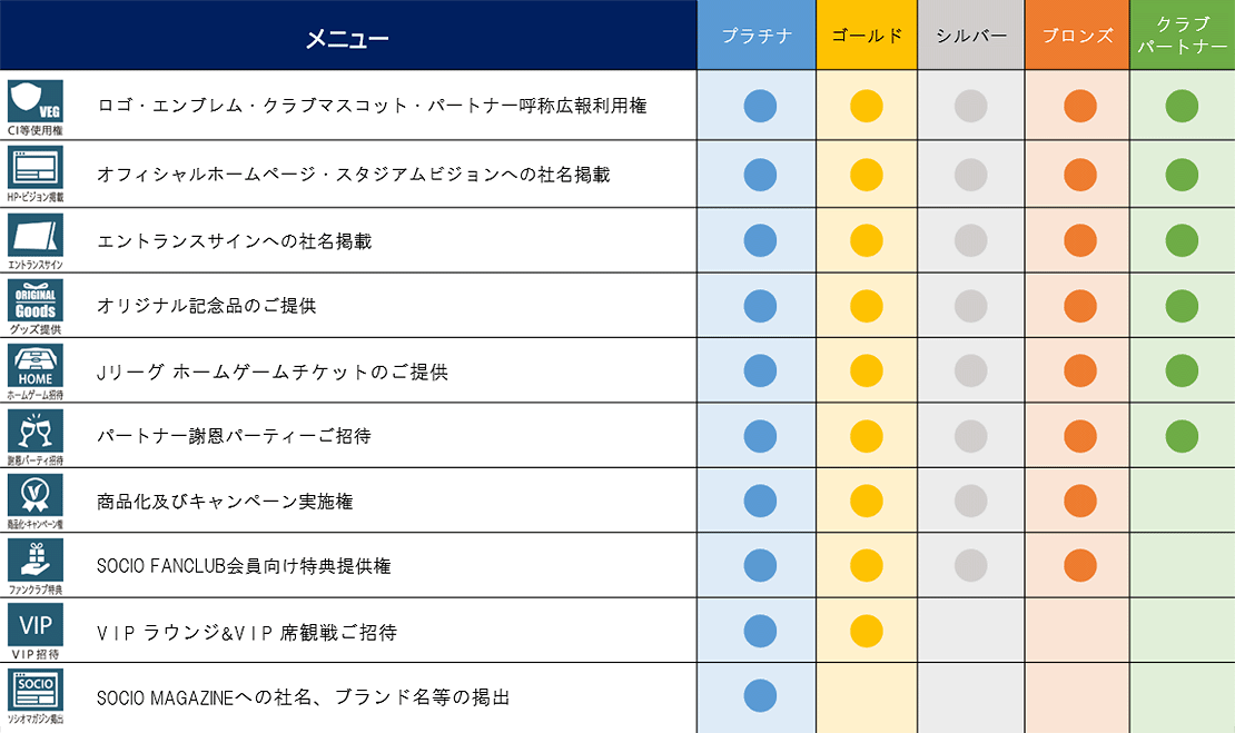 ベガルタ仙台クラブオフィシャルパートナーの共通メリットは下記の内容となります。