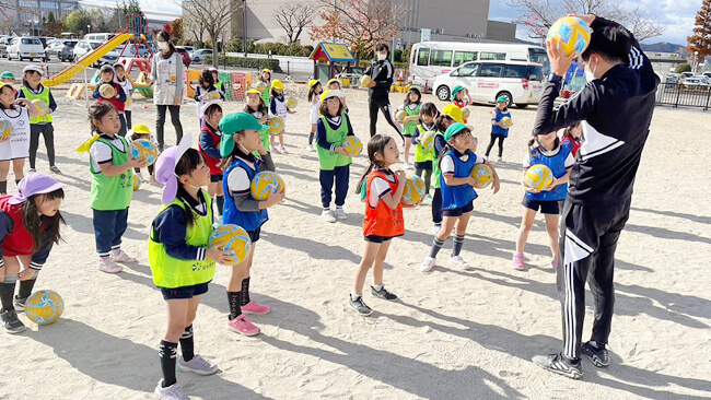 仙台市内を中心とした幼稚園、保育所(一部仙台市外も含む)を巡回訪問し、サッカー教室を実施しております。
