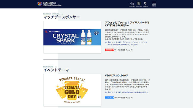 ベガルタ仙台オフィシャルホームページのニュースリリースによるマッチデー内容の告知やロゴ掲出をいたします。