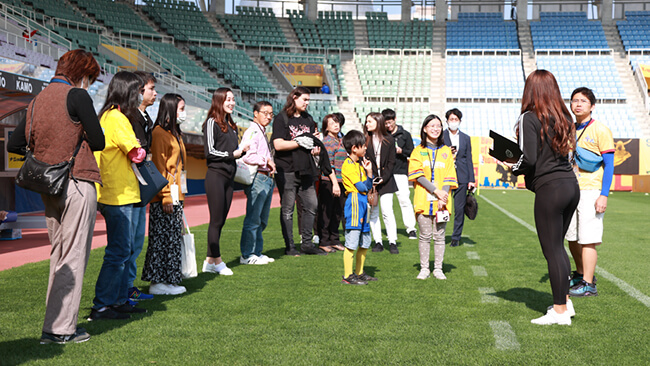 試合前にピッチや放送室、VIPラウンジ、ロッカールーム、ウォームアップルームなど普段見ることのできないスタジアムの様々な場所を見学することができます。(最大20名)