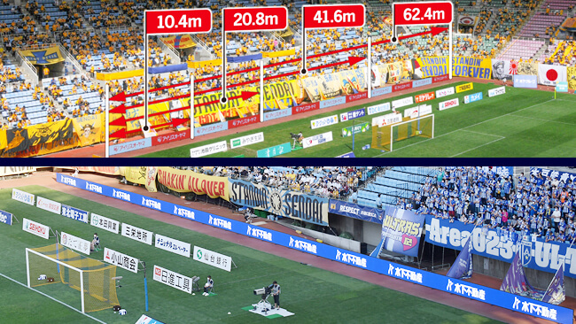 両ゴール裏に貴社名を掲出した常設看板(1・2列目)を設置いたします。