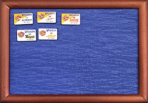 このピンバッジフレームの材料を「ピンバッジ飾りキット」として実費販売します。その場で作ることもできるようにスペースも準備します。