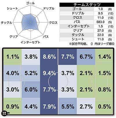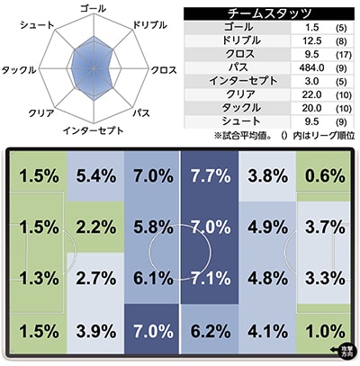| 9 | 鹿島 | 3(2) | 1 | 0 | 1 | 0 |