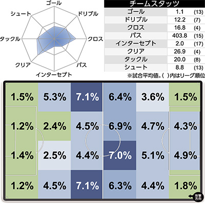 | 8 | 神戸 | 41(29) | 12 | 5 | 12 | 0 |