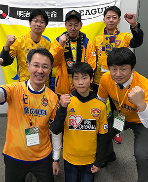 【 前列左から 】 菊地達郎さん「絶対勝つ」 川村桜大さん「今年はタイトルとれなかったけど、来年はタイトルとるぞ!」 森岡督恵さん「I Loveベガルタ仙台」