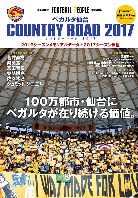 べガルタ仙台メモリアルデータブック「カントリーロード」は装いも新たに、『ぴあMOOK「FOOTBALL PEOPLE 特別編集」 ベガルタ仙台「COUNTRY ROAD 2017」』として発売します。