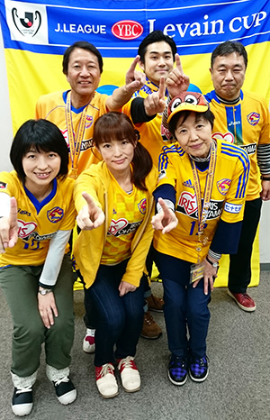 【 前列左から 】 伊藤由紀恵さん「がんばれ!ベガルタ!!」 伊藤美由紀さん「若手に期待♥」 千葉静子さん「願うはJ1にいつづけること!!」