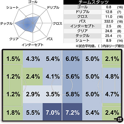 | 7 | FC東京 | 20(12) | 6 | 2 | 4 | 6 |