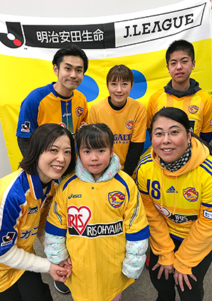 【 前列左から 】 澤口幸恵さん「いつも応援してます」 澤口一姫ちゃん「勝ってくださーい!!」 若生志保さん「今日もオーラ歌わせてください!!」