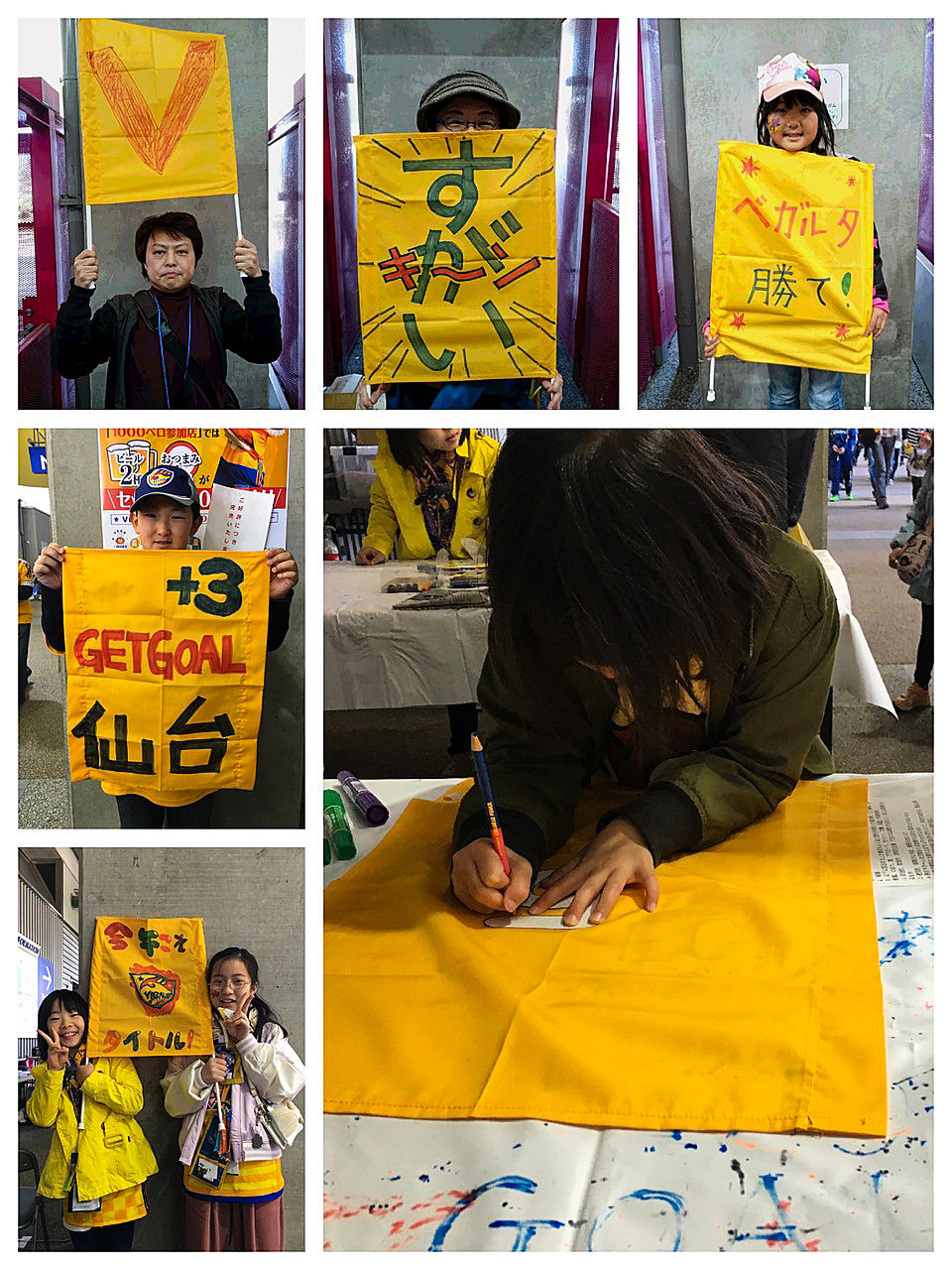 3月31日(土)長崎戦ではゲーフラを作ろうと考えているサポーターのみなさまへ実費でゲーフラキットを提供いたしました。その場でオリジナルのゲーフラを作るサポーターも多く見られました。