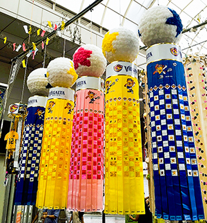 この七夕飾りの吹き流しには、ベガルタサポーターのみなさんの願い事を書いた短冊を飾りつけます。