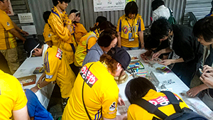 たくさんのサポーターのみなさまにご参加いただきました。お陰様で用意したカンバッジは完売しました。お買い求めになれなかったみなさまには大変申し訳ございません。