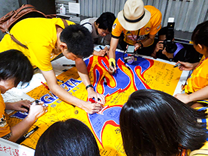 9月1日(土)清水エスパルス戦において、市民後援会ブースに寄せ書き用のベガルタフラッグを用意し、CSKAモスクワに移籍の決まった西村選手へのメッセージを受け付けました。思いのこもったフラッグは当日の壮行セレモニーで西村選手へお渡ししました。