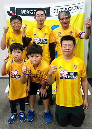 【 前列左から 】 永野誠弥さん「がんばって勝ってください」 永野佑弥さん「チームのみなさんがんばって!」 永野桂一さん「行くぞ!ACL!!」