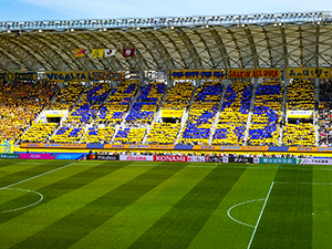 3月10日ヴィッセル神戸戦ではSバック指定席にてコレオ(人文字)を行いました。Sバック指定席のみなさまにはご協力いただきましてありがとうございました。