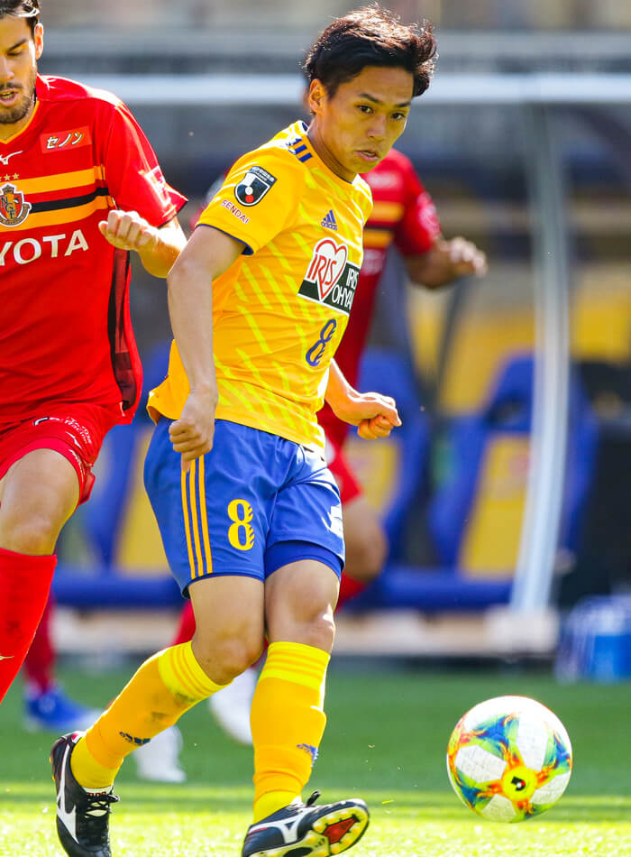 明治安田生命J1リーグも中盤戦に突入。仙台は第14節名古屋戦で、前半、MF15吉尾海夏の2試合連続ゴールで先制。その後、追いつかれるも、DF23シマオマテとDF13平岡康裕の新センターバックコンビが安定したパフォーマンスを見せ、粘り強く戦い続けた。そして後半、FW38長沢駿が2ゴールを挙げる大活躍で3-1と快勝。ユアスタは大いに盛り上がった。そして、前節・松本戦。ここまでアウェイ全敗だったが、前半、DF2永戸勝也のクロスから仙台ユース出身MF18道渕諒平が、長身の長沢をおとりとして使い、その外側からフリーでヘディングシュートを決めた。その後も相手のロングボール主体の攻撃をシマオ、平岡が丁寧にはね返し1-0で試合終了。今シーズン初アウェイ戦勝利を挙げた。