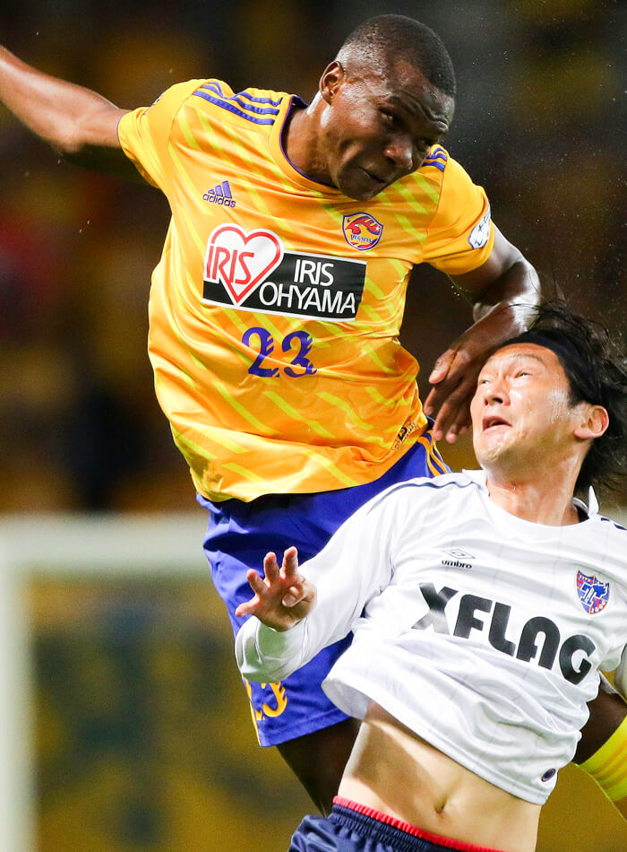 6月にセンターバックとして出場後、DFラインの中心として絶対的な存在となったモザンビーク国籍のシマオマテ。人への強さ、高さ勝負の強さといった部分ではJリーグの中でも圧倒的な存在で、6月のリーグ戦4連勝に貢献し、Jリーグ月間MVPも受賞した。ピッチを離れると、愛らしい笑顔を見せることもあってか、サポーターの人気はうなぎ登りで、ソシオ・ファンクラブ感謝の集いでも、シマオとヤクブスウォビィクのブースには長蛇の列ができた。リーグ後半戦のポスターでも存在感は抜群。すっかり仙台の顔になった。