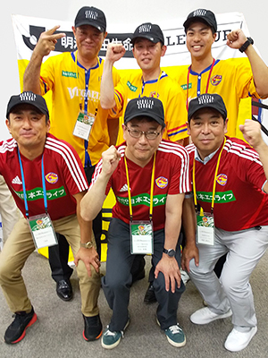 【 後列左から 】 嶋英樹さん「ファイト No.1 ベガルタ!!」 松永光司さん「共に勝利をつかみとろう!」 古西真一朗さん「熱くなれ、Go VEGALTA!」