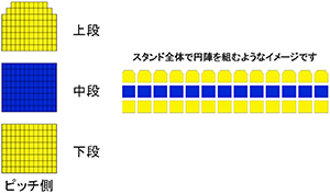 ホーム最終戦恒例のコレオ(人文字)を行います。ゲートで配布したチアペーパーを下記の要領で選手入場時に掲げてください。